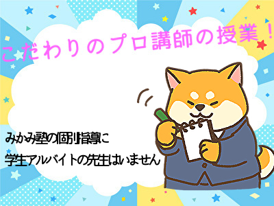 同じ点数でも『やるべき学習内容』は、ひとりひとり全く違います。たとえば、80点のテスト。「文章題の応用だけ全て間違えた80点」と、「計算ミスが多かった80点」。どちらのお子さんも同じ学習内容でいいでしょうか?同じ学習内容では、そのお子さんに一番あった方法とは言えません。「点数によってやる内容を決めているマニュアル」では、対応できないのです。だからこそ、「みかみ塾 山口矢原教室」ではマニュアルに従うアルバイト講師を使わず、「ひとりひとりの学力や性格にあわせて授業のできる正社員のみ」の授業にこだわっています。
